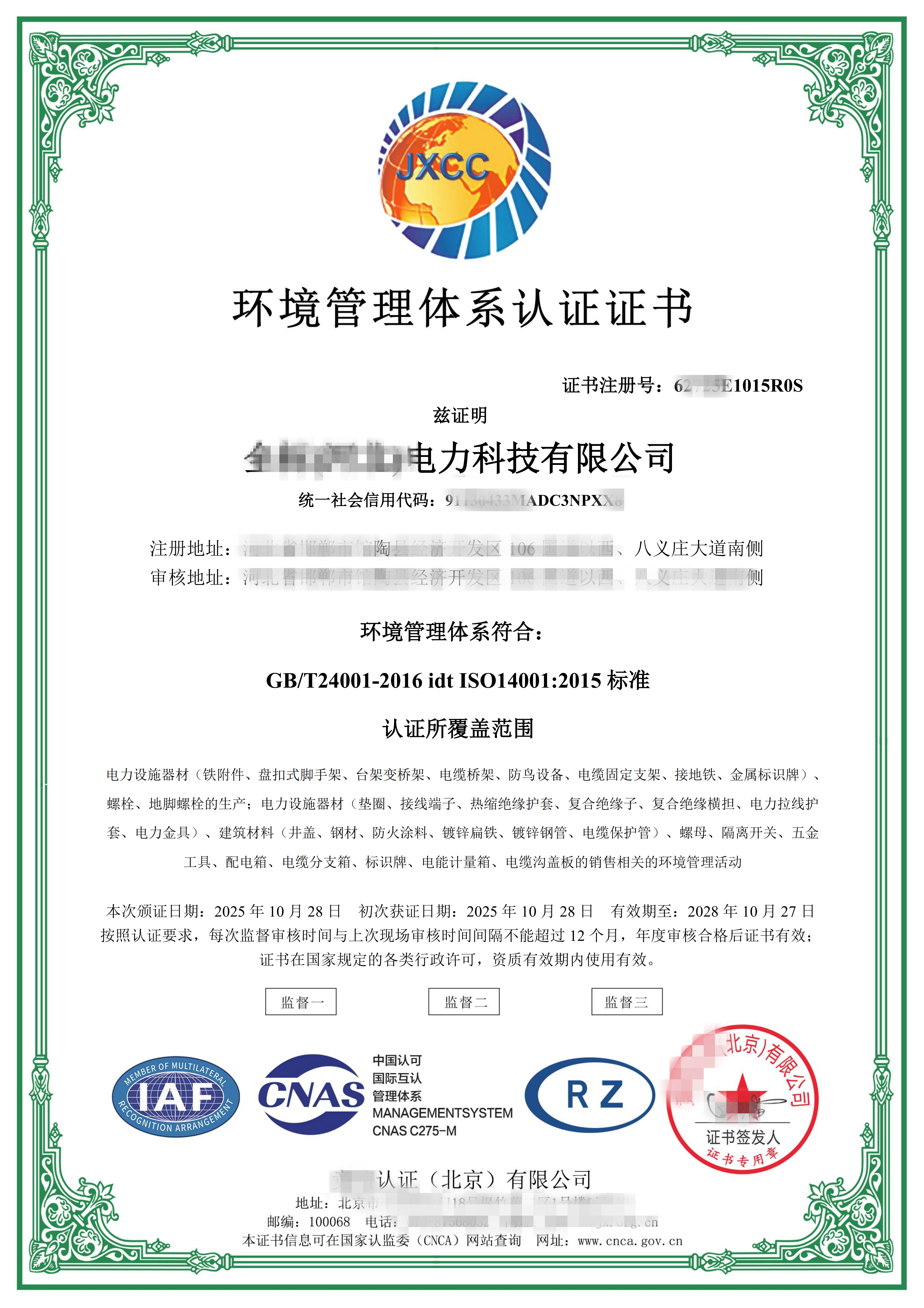 首页:检测认证 > 质量/环境/职业健康安全认证证书