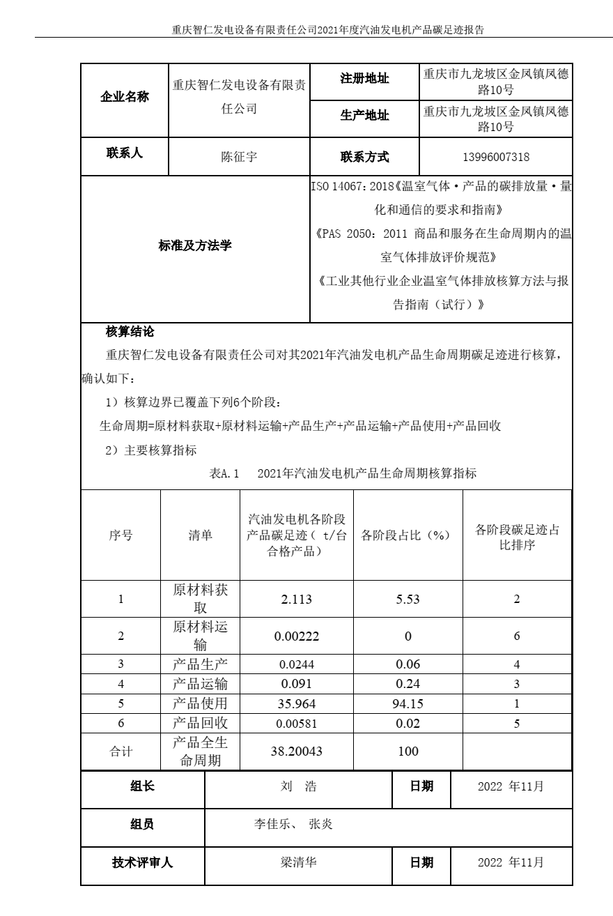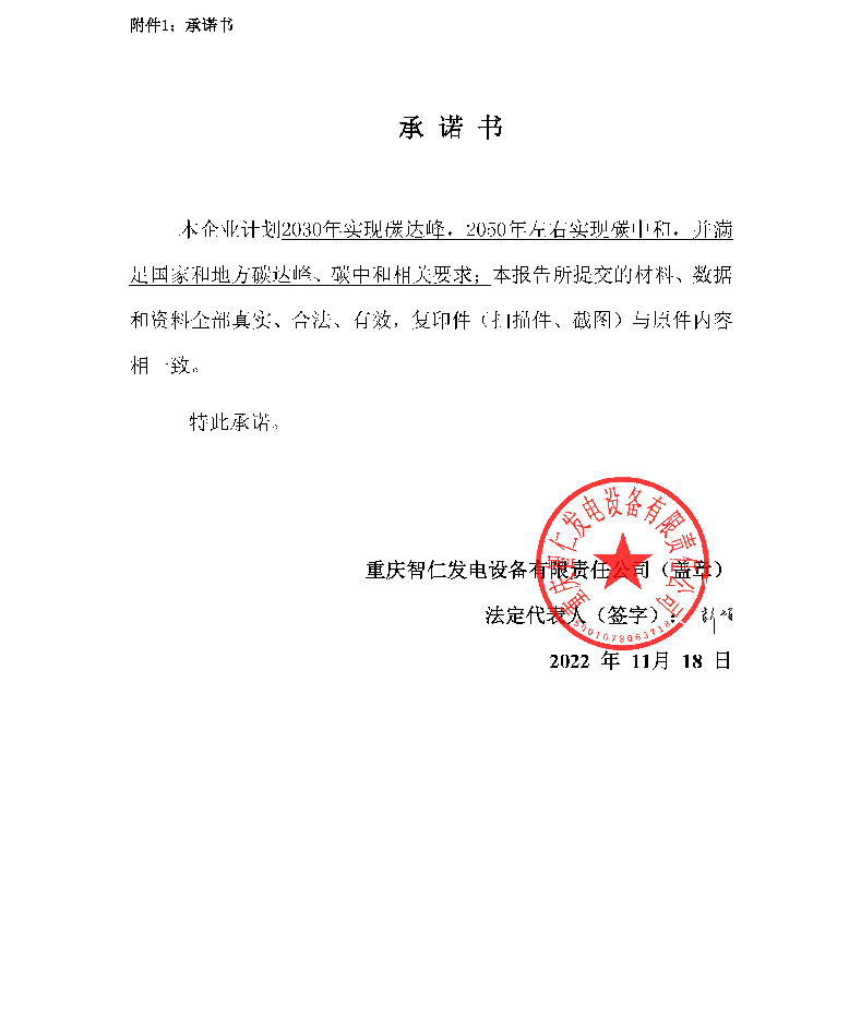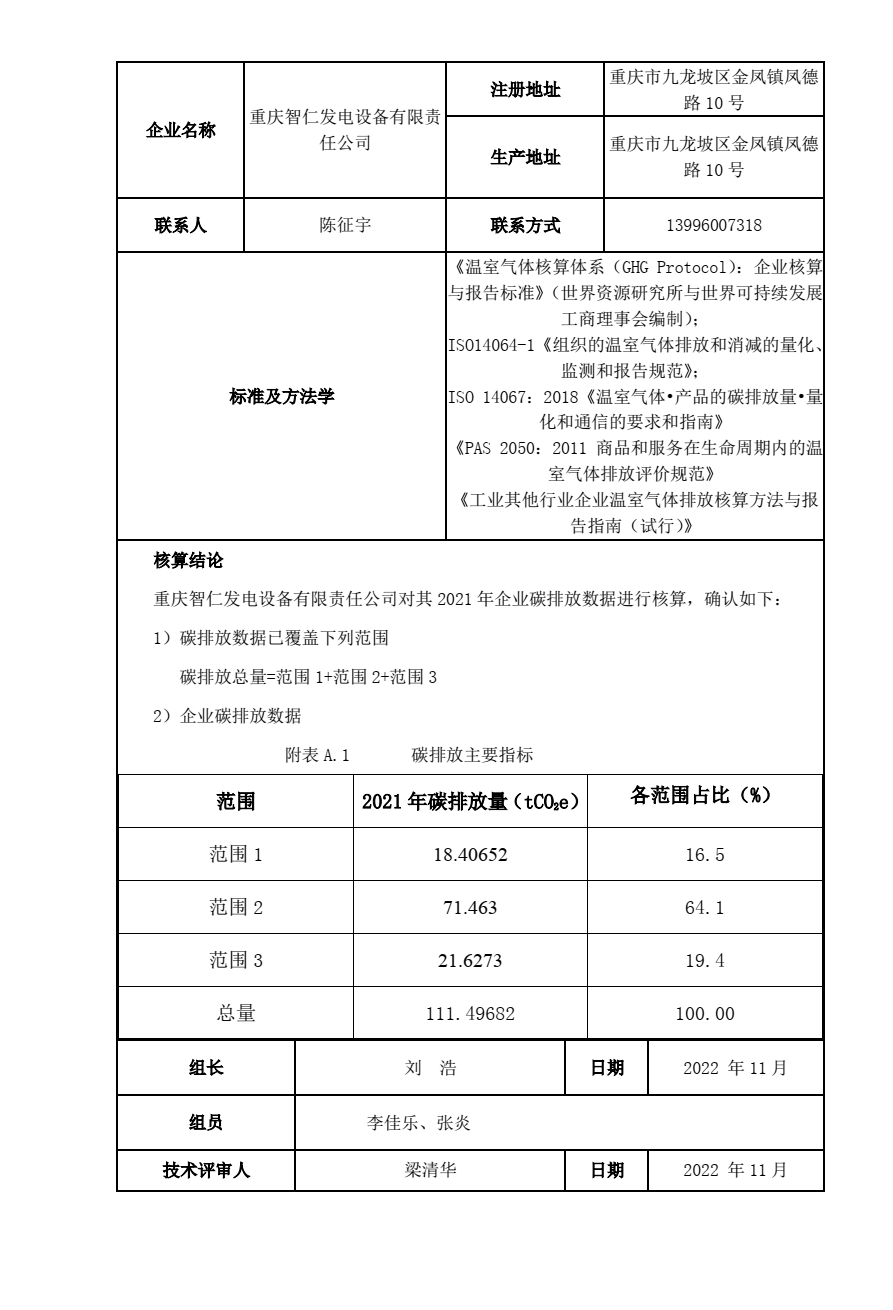重庆智仁发电设备有限责任公司2021年碳排放信息披露