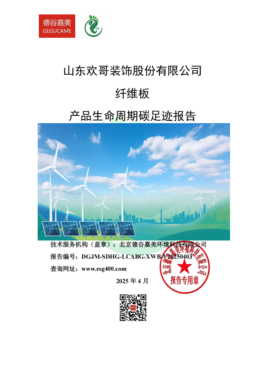 山东欢哥装饰股份有限公司纤维板产品生命周期碳足迹报告